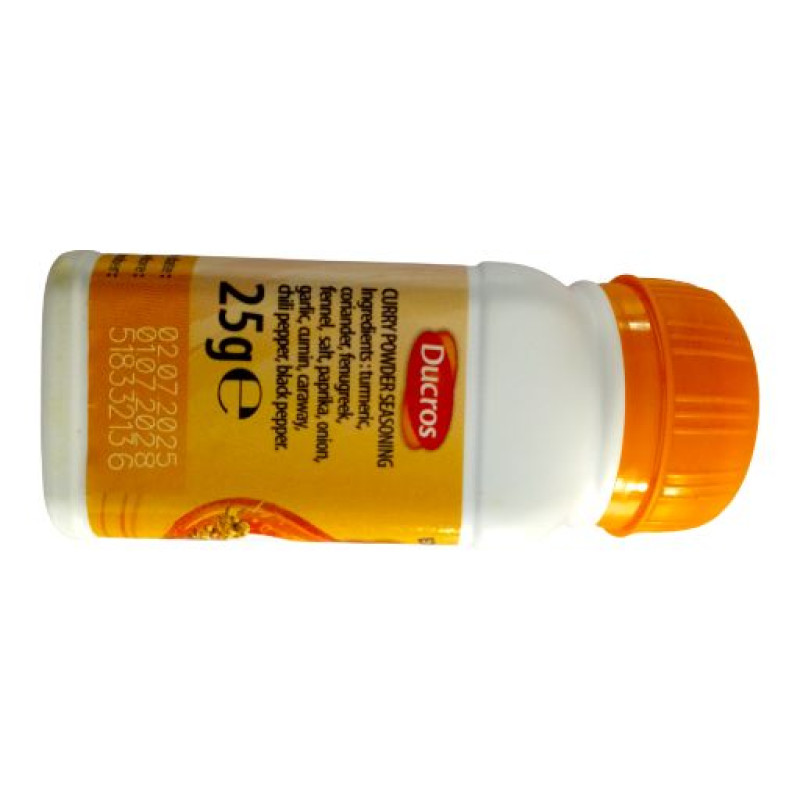 Ducros curry is a fragrant blend of spices that packs a ton of flavor. It’s a mix of turmeric, coriander, cumin, and other spices, giving dishes a warm , aromatic taste and a vibrant yellow color. Perfect for adding depth to rice dishes, stews, grilled meats or veggies making it staple in many Nigeria kitchens. Ducros Curry Powder is a popular, aromatic blend of 14 natural,, gluten-free, and Vegetarian-friendly spices, including turmeric, coriander, and cumin. Known for enhancing Nigerian dishes like Jollof rice, stews, and soups, it provides a warm, rich golden color and flavor. It is packaged in airtight containers to maintain freshness. Key Features & Description: Ingredients: Contains turmeric, coriander, fenugreek, fennel, salt, paprika, onion, garlic, cumin, caraway, chili pepper, and black pepper. Aroma & Taste: A fragrant, savory, and slightly spicy mixture designed to enhance meat, poultry, and vegetable dishes. Culinary Uses: Ideal for stews, sauces, marinades, rice dishes (fried/Jollof), and soups. Packaging: Commonly sold in 25g, 10g, and larger quantities in airtight plastic jars to ensure long-lasting, fresh, and aromatic, intense flavor. Characteristics: Free from artificial colors, non-GMO, and provides a consistent, rich flavor to dishes.